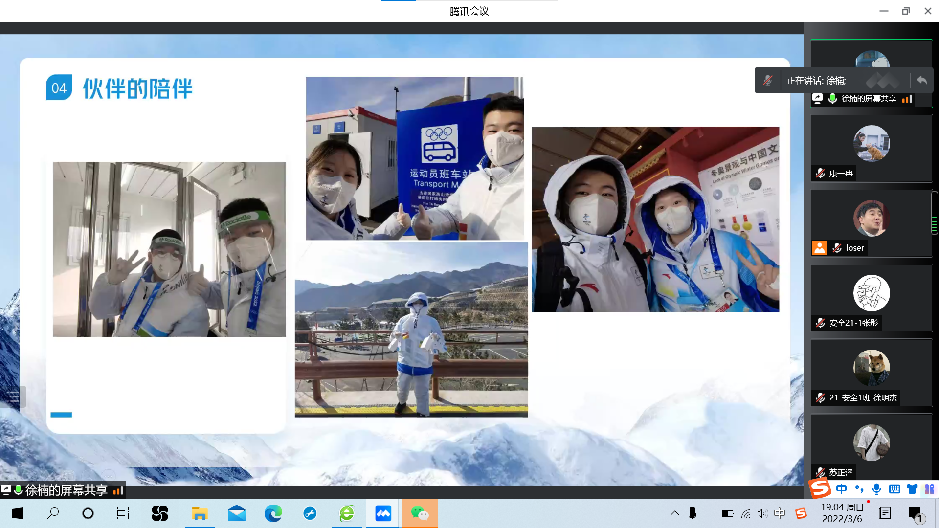 3月6日,中石大安全与海洋工程学院在线举办第一期冬奥故事分享会。冬奥村注册业务领域志愿者闫序和冬奥村赛事服务(ACP)领域志愿者胡赛涛、徐楠三位志愿者担任主讲,学院100余名学生参加活动。