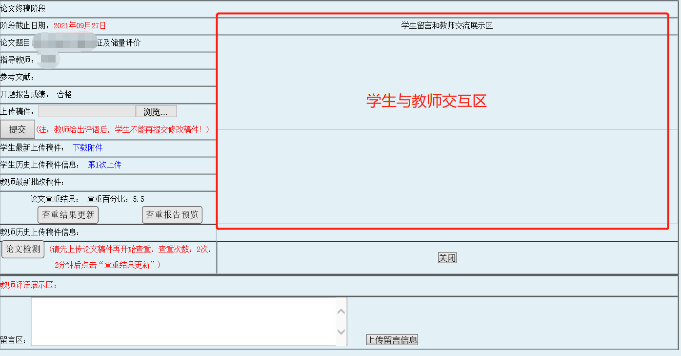 4.如在论文写作过程中遇到与专业内容相关的问题,请在交互区跟指导教师留言讨论。