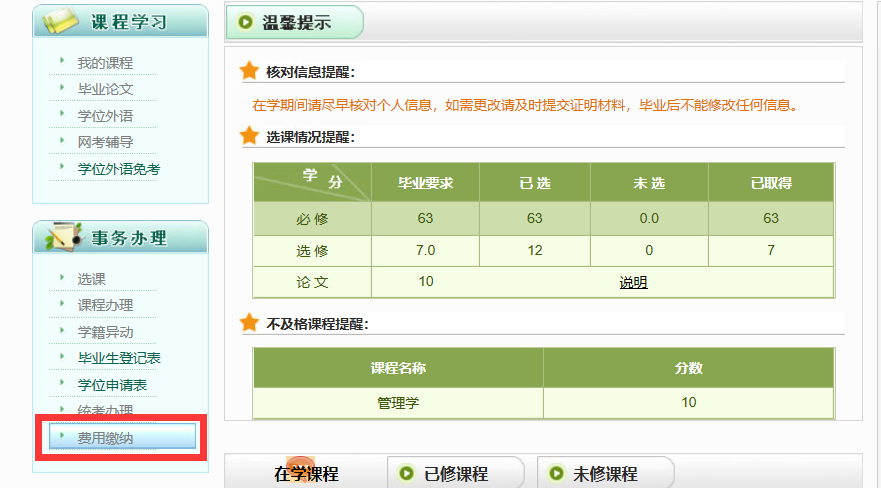 (4)缴纳学费