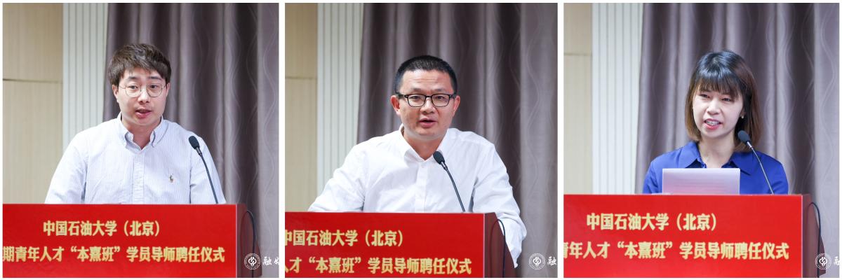 王同奇宣读了聘任15位院士、6位专家担任第二期青年人才“本熹班”学员导师的决定,金衍为参会的学员导师颁发了聘书。石油工程学院李靖、安全与海洋工程学院李云涛、经济管理学院吕慧代表学员发言,表达了以导师为榜样,诚心求学,增长本领,主动服务国家重大战略需求的信心和决心。学员导师充分肯定了学校举办青年人才“本熹班”的做法和成效,表示将切实担起导师责任,精心培育青年人才,助力更好更快成长成才。